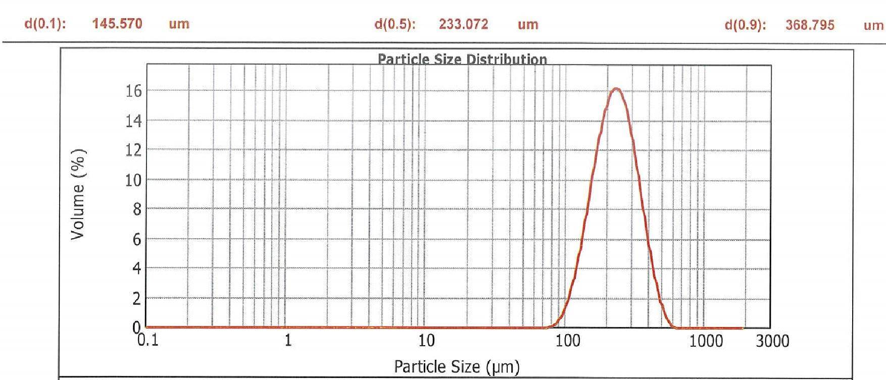 | PSD | 80 - 400 μm ≥ 96.0 % |